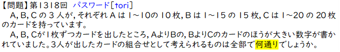 第1318回応募者一覧![]() | 出題日時 2025/09/20 21:00:00 | 締切日時 2025/09/27 21:00:00 | ||